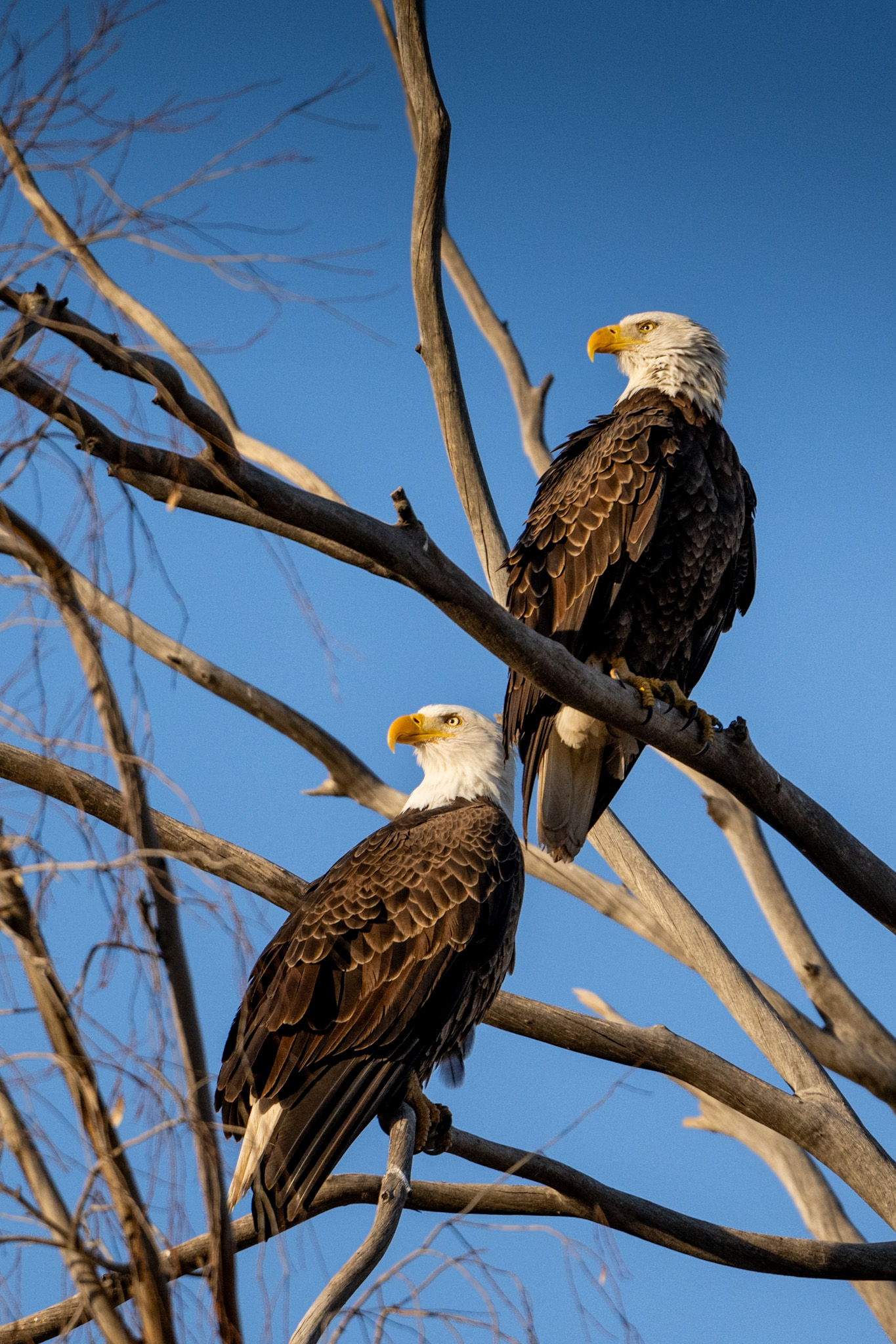 Eagles in the desert?! Yes! In the Southwest our desert rivers and lakes support a uniquely-adapted population of Bald Eagles, considered a distinct population from other eagles of North America. They are known as Desert-Nesting Bald Eagles, able to nest in high heat and low humidity conditions. They are not part of the population of eagles from the north that migrate to Arizona to over-winter and then migrate north in spring to breed. Our desert nesters reside here year-round.
