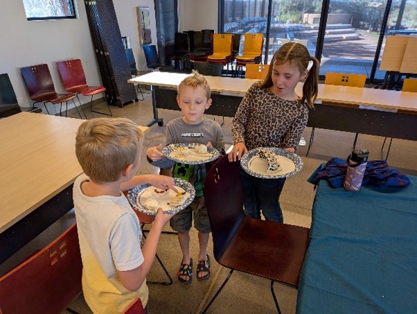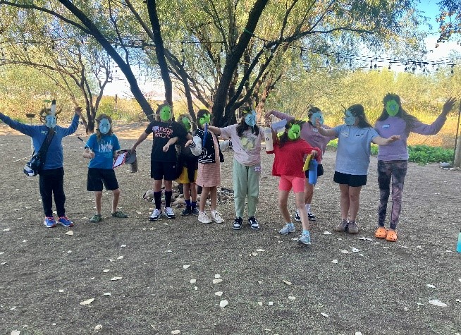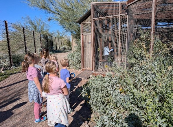The Superhero Club with Rachael, Liberty Wildlife educator, were excited to learn about the importance of riparian areas in nature, and how everything works together to make riparian areas beautiful and beneficial. They visited “Junior” a black-crowned night heron, and an example of a riparian denizen. Mosaics made of clay and beans were fashioned to represent this concept.