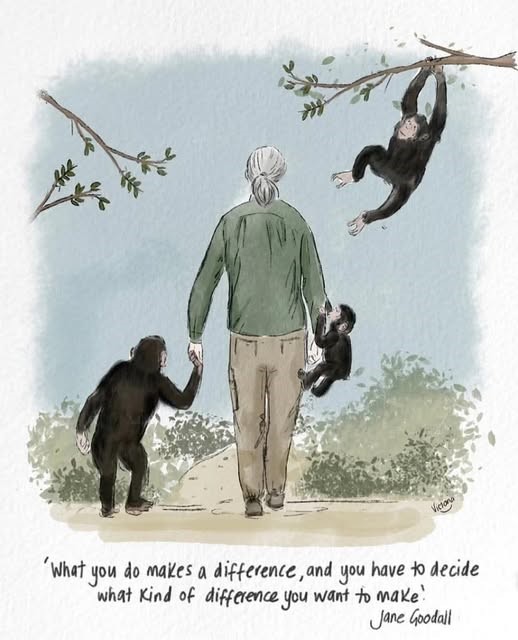 Jane Goodall decided to live with chimpanzees to study them and learn more about them. She knew that each person, young or old, could do something good for nature.