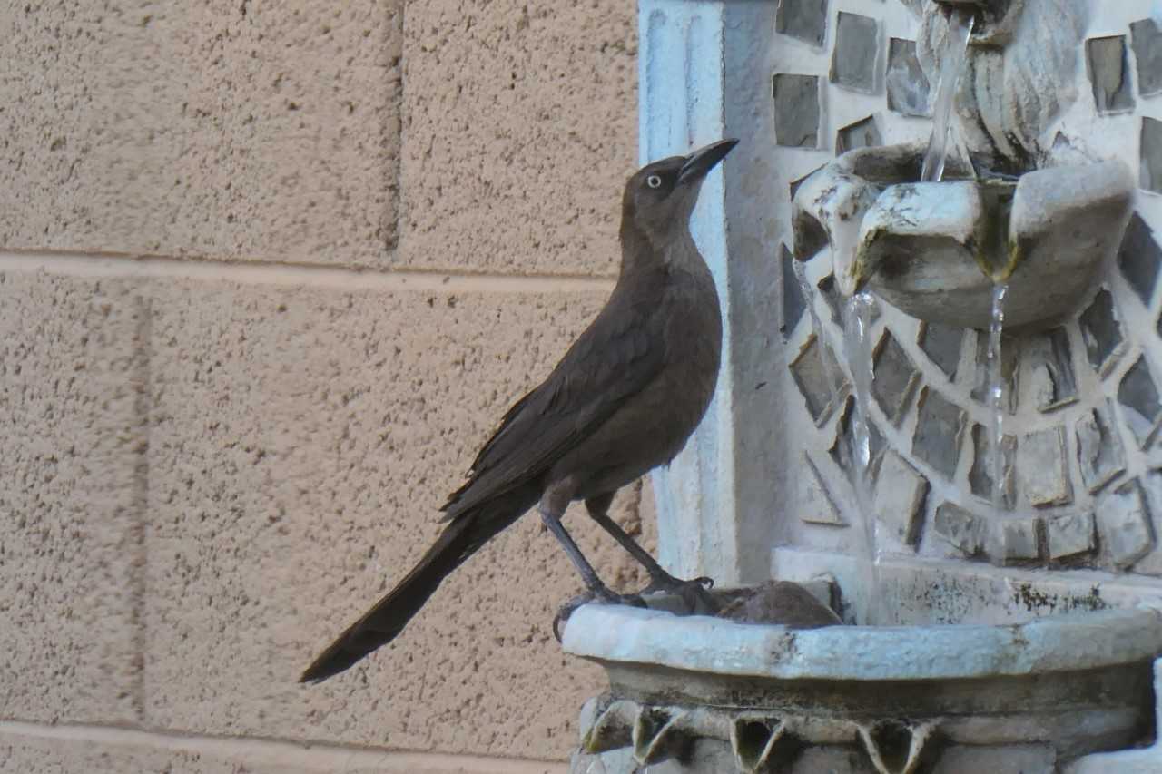 All summer our back yard was mobbed with great-tailed grackles who descended on our outdoor fountain every afternoon for drinks, bathing and lots of loud conversation. White-winged doves preened from dawn to dusk, perching on the back fence, darting in and out of jojoba shrubs and visiting the fountain. Costa’s hummingbirds and gamble quails nested in the area.